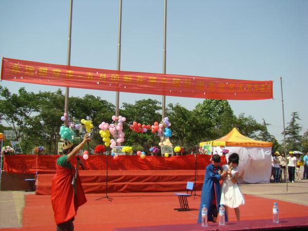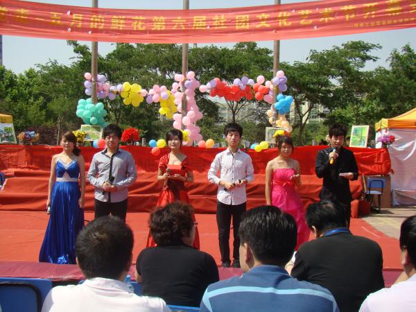 为庆祝建党90周年,讴歌中国共产党取得的伟大成就,唱响共产党好、伟大祖国主旋律,展示我院大学生积极健康向上的精神风貌,推动校园精神文明建设, 促进大学生全面发展,在主管院长和院团委全体师生的精心筹划准备下,我院于2011年5月31日下午在我院红旗广场隆重举行了“永远跟党走—五月的鲜花”校园文化艺术节开幕式。河南省粮食局副局长李国范、省粮食局机关党委副书记蒋为民、学院党委书记孙柏梁、院长李春迎、副院长于学军、周春玲、刘炜、工会刘国成主席、李春阳主任、刘晓霞书记、黄社章主任、徐磊处长、李松奇处长及各系团总支书记出席了开幕式。