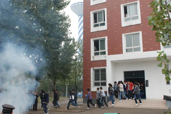 2011年11月9日是全国第21个消防宣传活动日,今年的消防月主题是“全民消防、生命至上”。为了进一步增强全院师生员工防火意识,普及火灾自救常识,我院于11月8日下午在校园举行了一场规模较大的消防培训和演练。院长李春迎担任消防培训和演练工作领导小组组长,培训及演练活动的总指挥长由副院长刘炜担任,活动主持人由保卫处处长贾玉海担任。此次活动由安全保卫处、院办公室、宣传部、学工处、团委、后勤保障处、后勤服务公司等共同承办,学院各单位的教职员工和全体在校生参与了培训和演习。活动分为三个环节:消防知识培训、灭火演习、逃生演练。