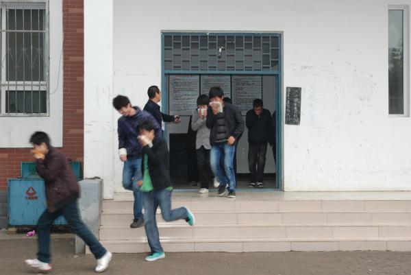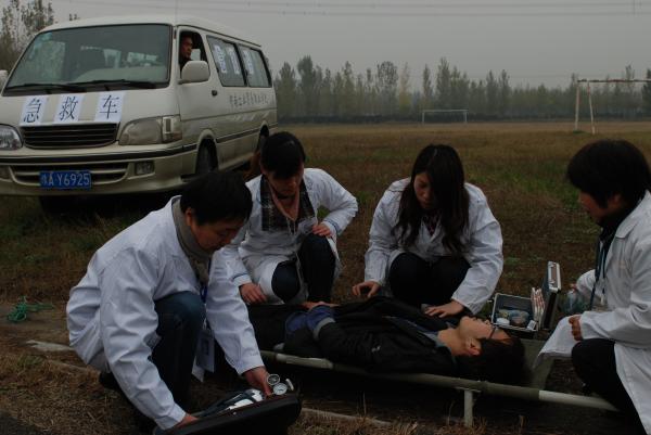 下午4点,在学生宿舍6号楼举行了火灾现场逃生演练。在各单位准备就绪后,刘炜副院长发出演习开始的命令,保卫处迅速拉响警报,6号宿舍楼近千名学生在保卫处工作人员指挥下,按照“确保安全、迅速撤离、顾全大局、救助结合”的原则,迅速而有序地由指定逃生路线从楼上撤离到操场集合,整个过程用时不到三分钟。校医院的医护人员也赶到现场进行了模拟救护工作。