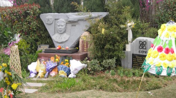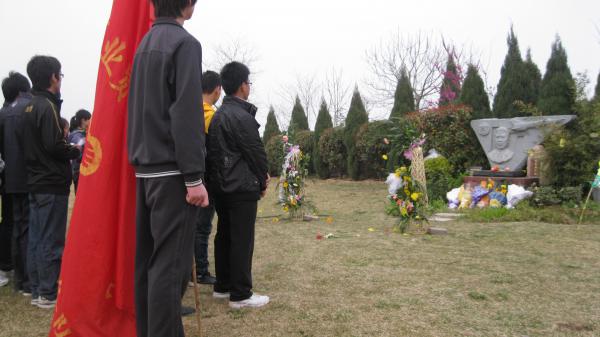 4月5日清明节当天,河南工业贸易职业学院40余名志愿者前往河南福寿园,祭奠长眠在这里的蓝天忠诚勇士李剑英烈士。