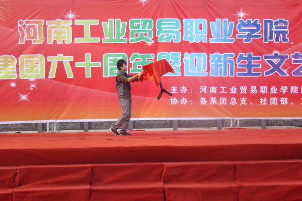 在祖国六十年华诞即将到来之际,9月25日下午,我院红旗广场歌声飞扬,掌声不息。在这里“庆祝建国60周年——暨09年迎新”文艺汇演正在进行着。学院领导李春迎、白新平、于学军、李杰虎、刘炜、袁宪章、刘国成及各系主要领导在百忙之中出席并观看了文艺演出。 演出在教职工合唱队《大海啊,故乡》的歌声中拉开了序幕,歌声唱出了大家对祖国——母亲的赞美之情。动人的歌声、优雅的舞姿、幽默的小品、动感的武术表达了工贸人庆祝祖国六十华诞,欢迎新同学的激动心情。歌伴舞《大地飞歌》唱出了建国以来全国人民在社会主义道路上昂首阔步迈向新生活的喜悦心情,唱出了全体师生“好歌越唱大路越宽阔”的坚定信心。武术表演《和谐太极》技艺高超,师生赞叹不已,将全场气氛推向了高潮。现代舞《椅子舞》推陈出新的以椅子为道具,展现了当代大学生的激情四射。小品《让一让,生活更美好》用幽默诙谐的语言讴歌了社会主义和谐社会,引得台下阵阵笑声。歌曲《世界第一等》引起全场观众的共鸣,大家挥舞双手与演员一起高歌,“千金难买好人生,我是世界第一等”唱出了在场所有观众的心声,也是所有工贸人对祖国六十华诞的郑重承诺。整场演出欢呼四溢,掌声如潮,动感的街舞,奇幻的魔术,都给大家留下了深刻的印象。最后,文艺汇演在充满异域风情的印度舞《Kiss Kiss》中落下帷幕,全场观众起立,久久不舍离开。