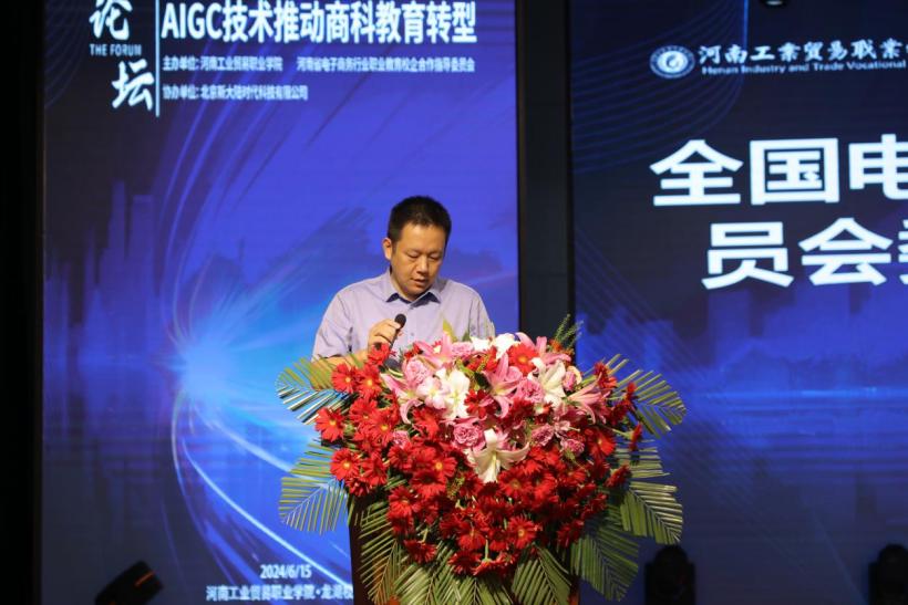 为深入贯彻党的二十大精神,积极响应政府工作报告中关于发展人工智能产业的号召,推进教育数字化,6月15日,我校与河南省电子商务行业职业教育校企合作指导委员会联合主办“AIGC技术推动商科教育转型”论坛。校党委书记李国锋出席论坛,党委副书记、校长曹利强和省电子商务行指委秘书长张苏丰致欢迎词,论坛由副校长李强主持。