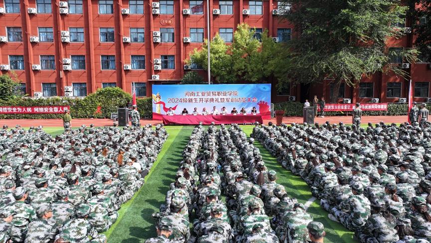 校党委副书记、校长曹利强代表学校向全体新同学致以热烈的欢迎,向承担本次军训任务的教官表示崇高的敬意,向辛勤培育同学们成长的家长和老师们致以诚挚的问候!曹利强介绍了我校的基本情况,希望同学们积极支持、参与学校的发展,全力以赴实现工贸人的梦想。他寄语2024级新生:一要转变角色快乐成长。尽快调整心态,适应独立生活和集体生活,在思想、学习、生活等方面早日融入大学,融入工贸。二要激扬青春志存高远。始终与时代同步伐、与民族共命运,在踏实勤勉、专注奋斗中更好地实现人生价值、升华人生境界。三要勇于担当砥砺创新。要将创新作为成长最好的磨刀石,既能仰望星空,又能脚踏实地,不断增加人生阅历。四要强技赋能匠心筑梦。要用好用足学校的优质教育资源,锤炼实用的职业技能,争做行业急需的“大粮工匠”,努力成为能工巧匠、大国工匠。曹利强希望同学们以良好的精神面貌和坚韧的意志品质顺利修好进入大学的第一门必修课——军事技能训练,打开激情带着梦想,开启美好的大学生活。