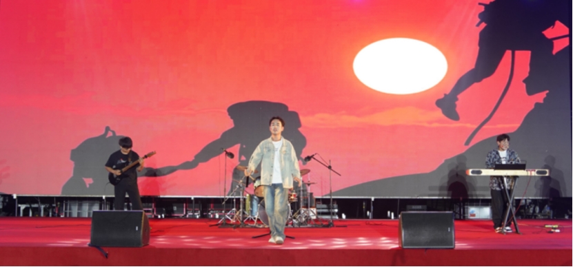云后乐队和信息工程学院联合带来的开场歌曲《海阔天空》率先点燃了现场气氛。随后,演出正式拉开序幕。