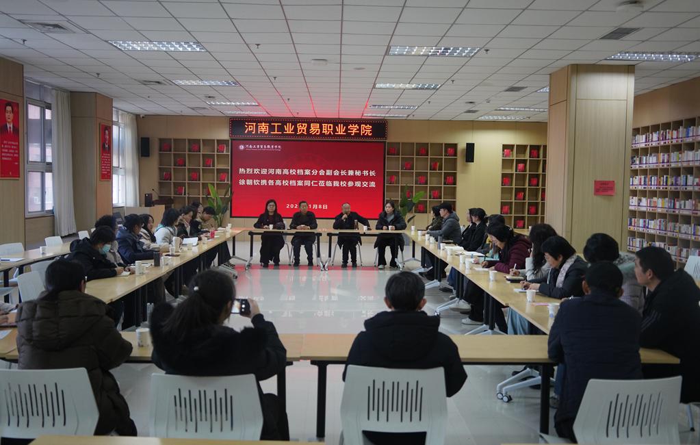 为深入学习贯彻习近平总书记关于做好新时代档案工作的重要指示批示精神,通过高校档案工作交流与合作等方式,加快推进“档案工作走向依法治理、走向开放、走向现代化取得实质性进展”,1月8日上午,河南高校档案分会副会长兼秘书长徐朝钦研究馆员携河南中医药大学、中原工学院、许昌学院、黄河科技学院、新乡学院、郑州西亚斯学院、河南财政金融学院、郑州科技学院、郑州理工职业学院、郑州信息工程职业学院、河南医学高等专科学校等十一所高校档案同仁来我校档案馆参观交流。