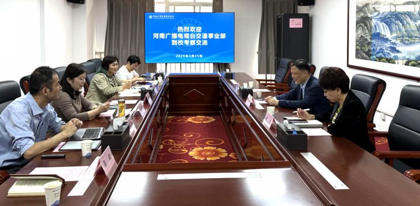 3月25日,河南广播电视台交通事业部总监张晗一行莅临我校考察交流。校长曹利强出席交流会,会议由副校长周艳丽主持。