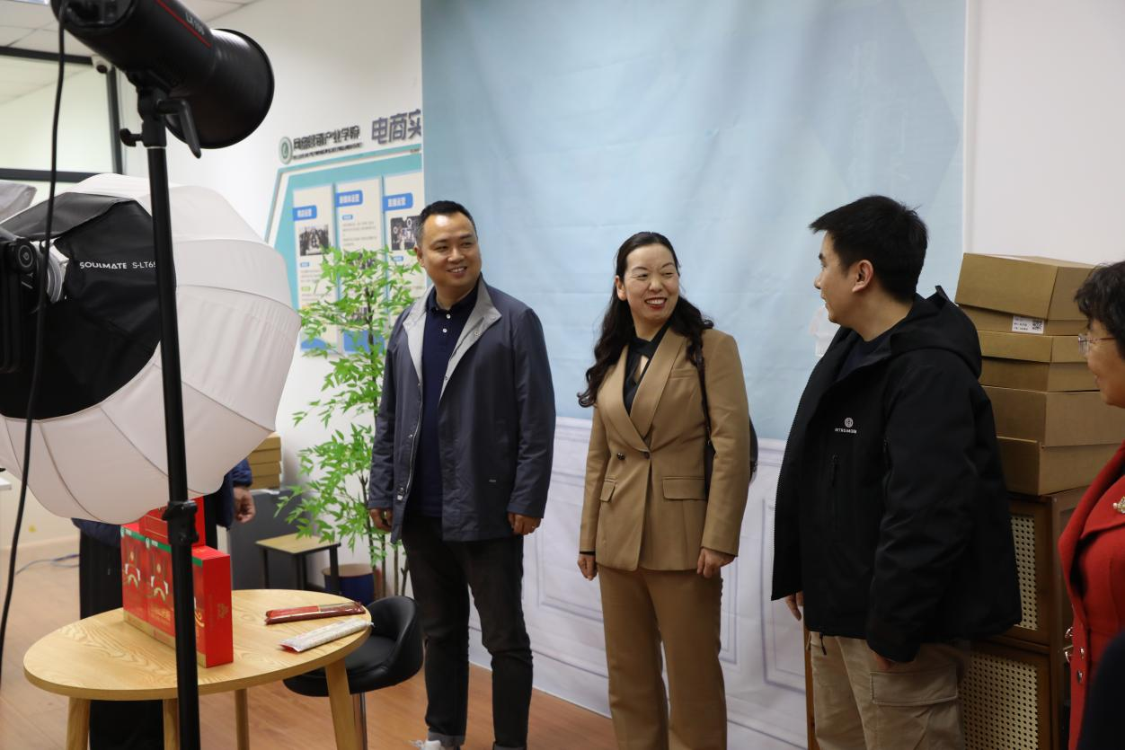 洽谈会结束后,全球拼购赵艳锋总裁一行参观了我校粮食博物馆和校史馆,经济贸易学院跨境电商工作室、国内电商工作室和电商直播间,并与工作室的师生进行了交谈。