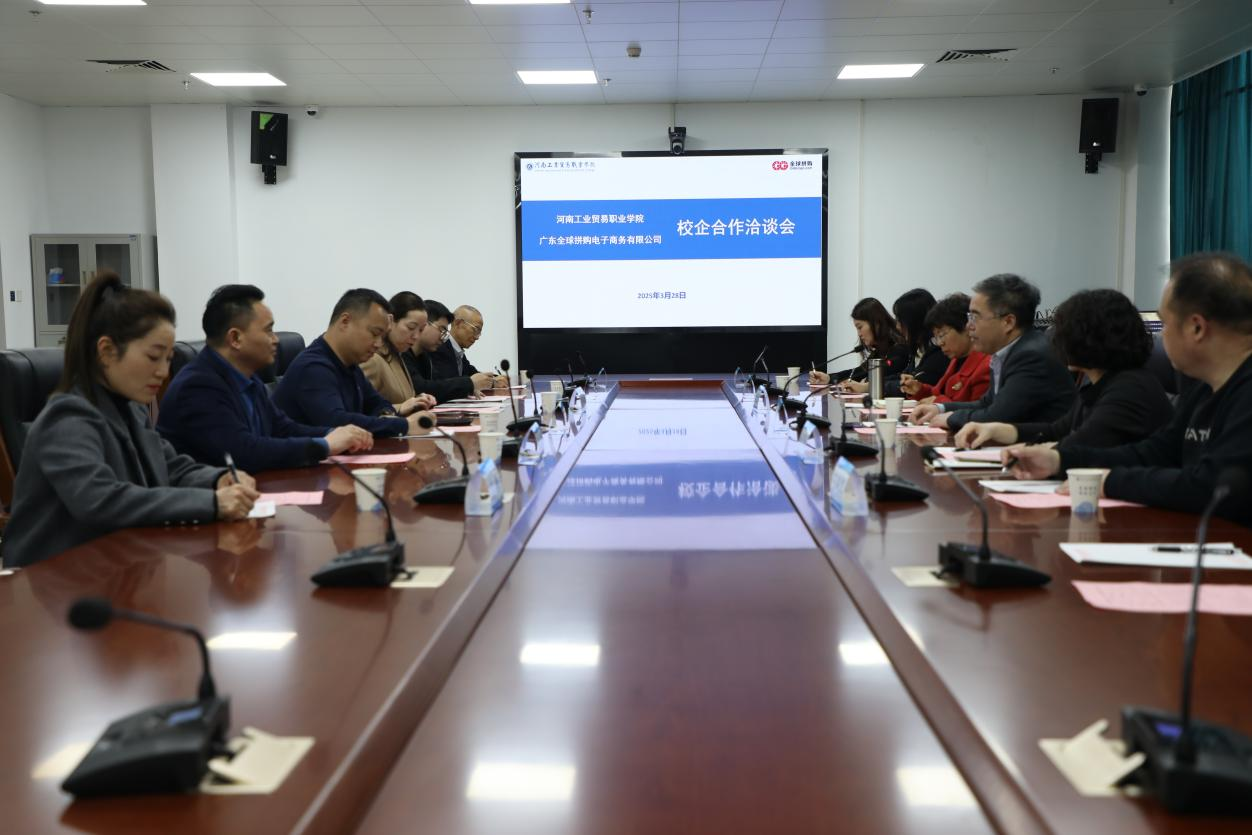 3月28日,我校与广东全球拼购电子商务有限公司围绕跨境电子商务专业人才联合培养在7005会议室举行了校企合作洽谈会。校长曹利强、副校长刘卫红,广东全球拼购全球市场运营总裁赵艳锋,全球拼购郑州分公司总经理鲁永凤等出席了洽谈。洽谈会由经济贸易学院院长张素勤主持。