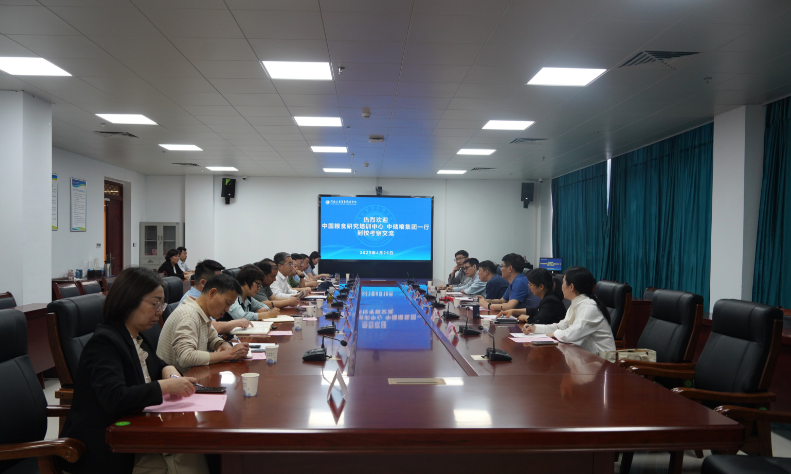 4月26日上午,中国粮食研究培训中心职业教育处副处长王小可、中国储备粮管理集团有限公司(以下简称“中储粮集团”)仓储管理与科技部科技与质量管理处处长张志航、中储粮集团质检中心质量运营部处长姜友军、中储粮集团河南质检中心总经理王伟、总检验师罗世龙一行来校调研交流并开展专题座谈。校党委副书记、校长曹利强,副校长王铬、李强、赵扬、周艳丽及相关部门负责人出席活动。