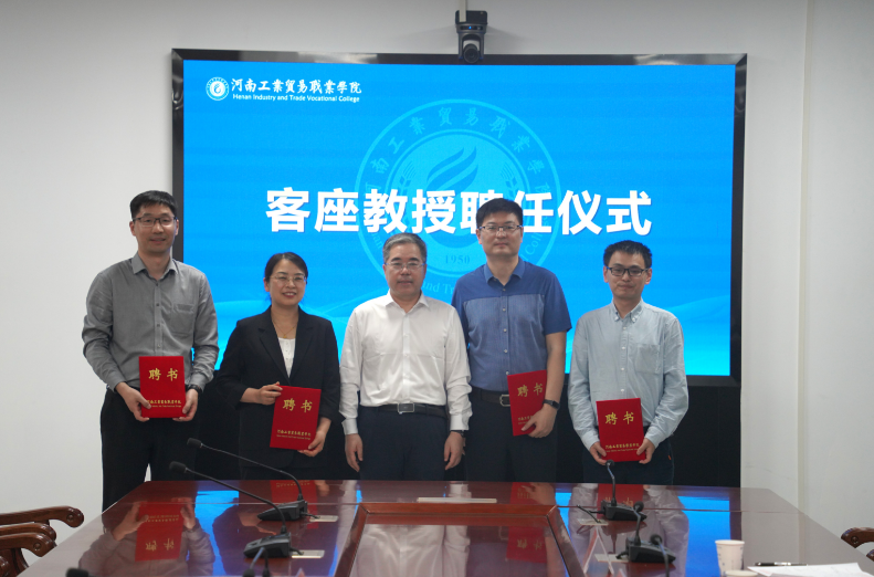 曹利强代表学校为张志航、姜友军、王伟及罗世龙四位专家颁发客座教授聘书,进一步强化校企师资协同,推动产学研用一体化发展。