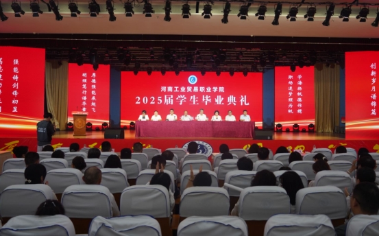 6月21日上午,河南工业贸易职业学院2025届学生毕业典礼在龙湖校区学术报告厅举行。全体校领导出席典礼。典礼由校党委副书记柴瑞帅主持。