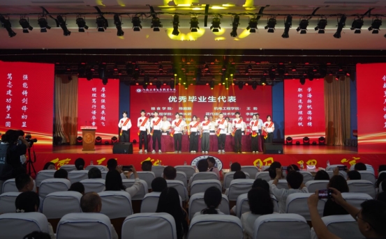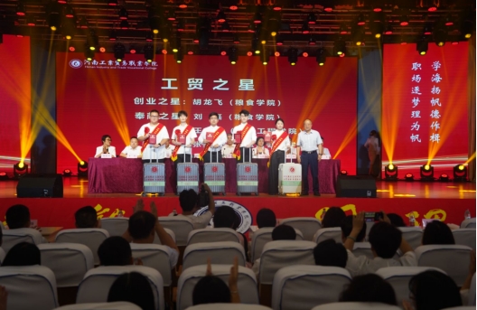 毕业典礼在庄严的国歌声中拉开帷幕。校党委书记李国锋为“工贸之星”颁发荣誉证书和奖品。