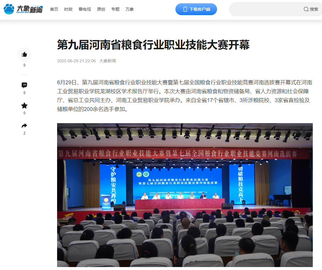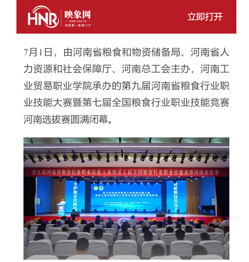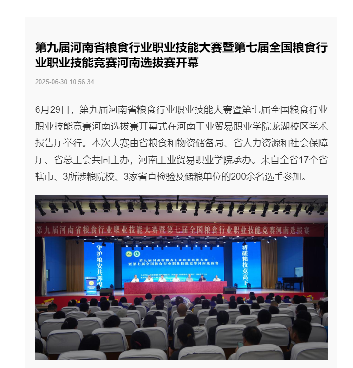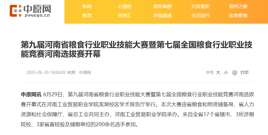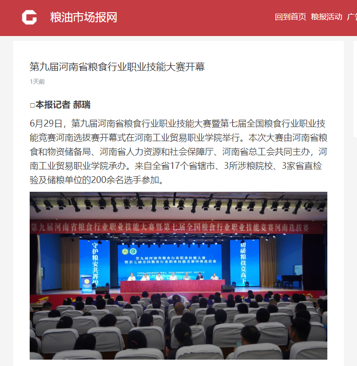 【中原网】第九届河南省粮食行业职业技能大赛暨第七届全国粮食行业职业技能竞赛河南选拔赛开幕