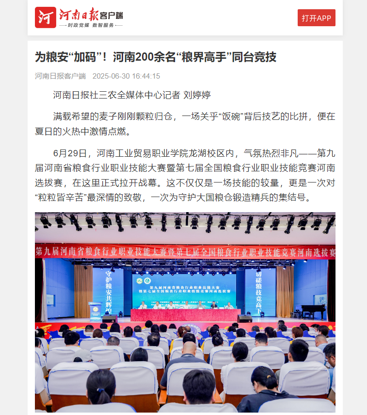 【河南日报】为粮安“加码”!河南200余名“粮界高手”同台竞技