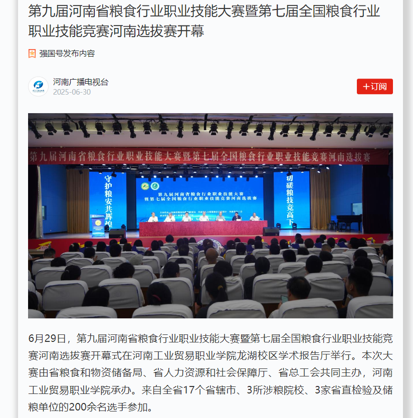 【河南广播电视台】第九届河南省粮食行业职业技能大赛暨第七届全国粮食行业职业技能竞赛河南选拔赛开幕