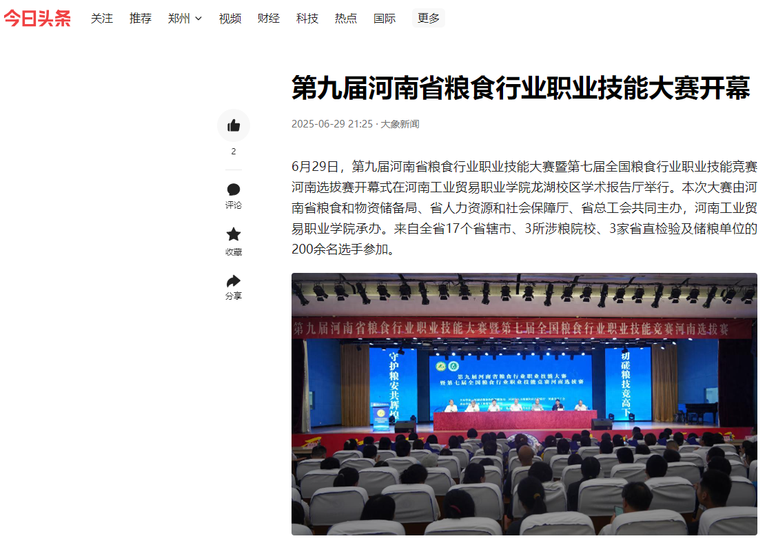 【今日头条】第九届河南省粮食行业职业技能大赛开幕