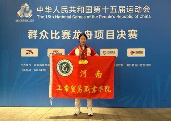 7月5日至6日,第十五届全运会群众比赛龙舟决赛项目在广东省佛山市南海区丹灶镇举行。来自河南工业贸易学院商业贸易学院 24电商101班的李星瑶,代表广东队出征女子组及混合组100米、200米四个项目,最终斩获四枚金牌。