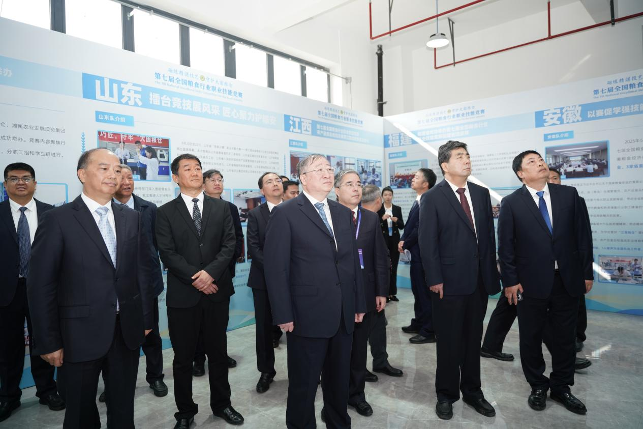 11月4日,在全国第七届粮食行业职业技能竞赛开赛之际,国家发展改革委党组成员、国家粮食和物资储备局党组书记、局长刘焕鑫,在河南省副省长李酌,中华全国总工会书记处书记、党组成员张新武等领导的陪同下莅临我校理工实训楼等竞赛场地,开展竞赛巡考督导,并参观了我校的技能成果展与各省的初赛成果展、优秀选手风采展及合作企业展。