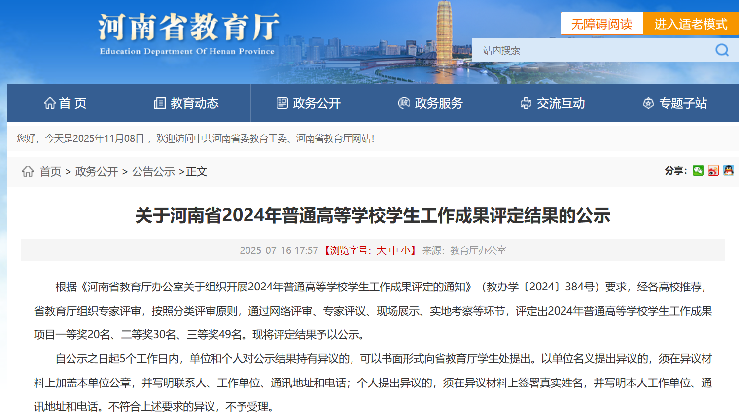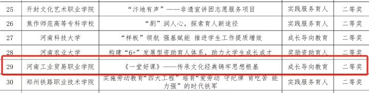 近日,河南省教育厅公布了2024年普通高等学校学生工作成果评定结果。由我校党委精心部署、党委书记亲自带队申报的学生工作成果《一堂好课—传承文化经典,铸牢思想根基》,在众多参赛成果中表现优异,荣获二等奖。此项殊荣不仅是对我校成果导向教育模式实践成效的高度认可,更是我校党委高度重视学生工作、着力构建“三全育人”大格局的生动体现。