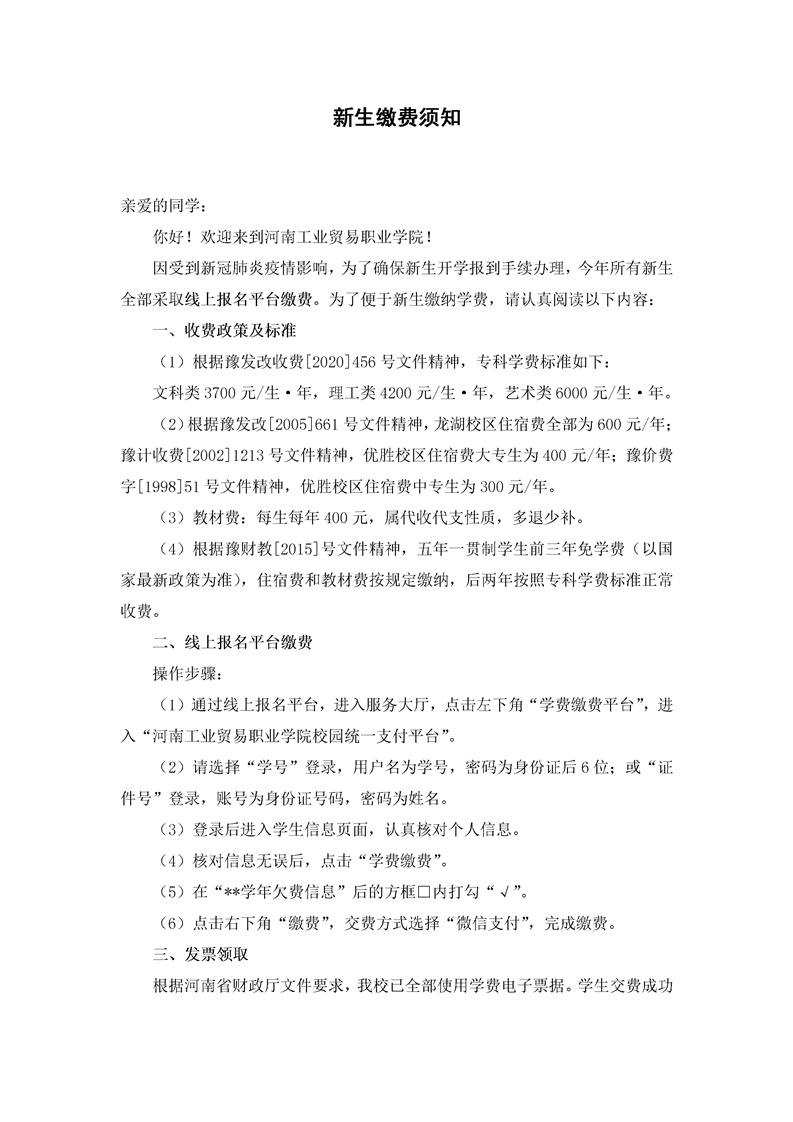 新生缴费须知(2021)