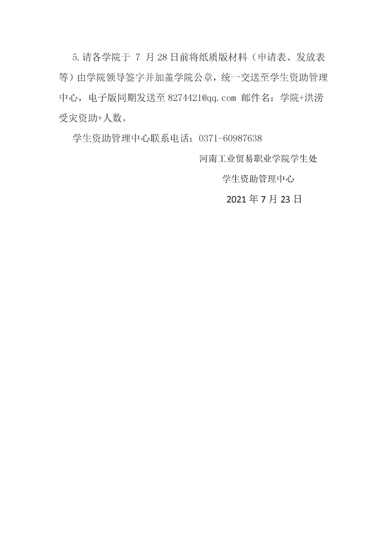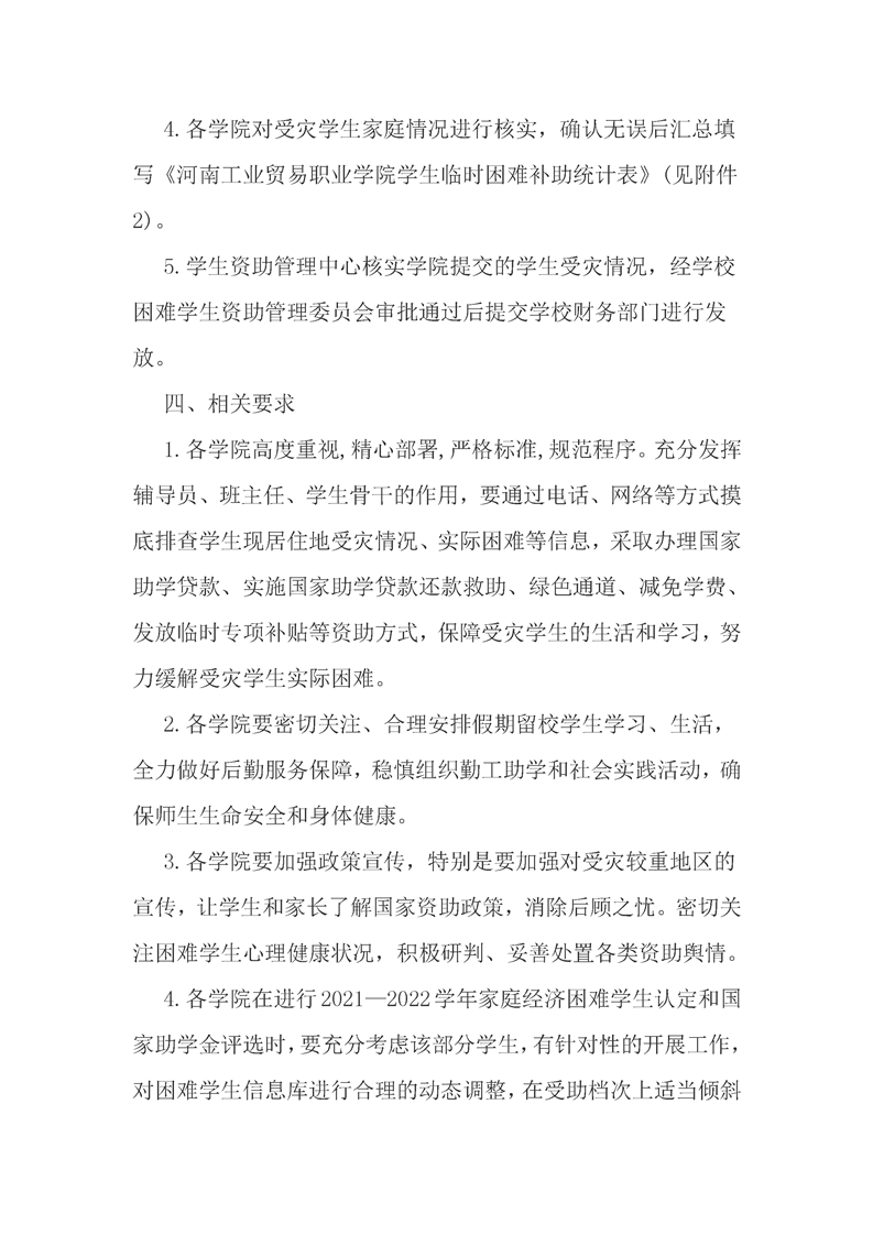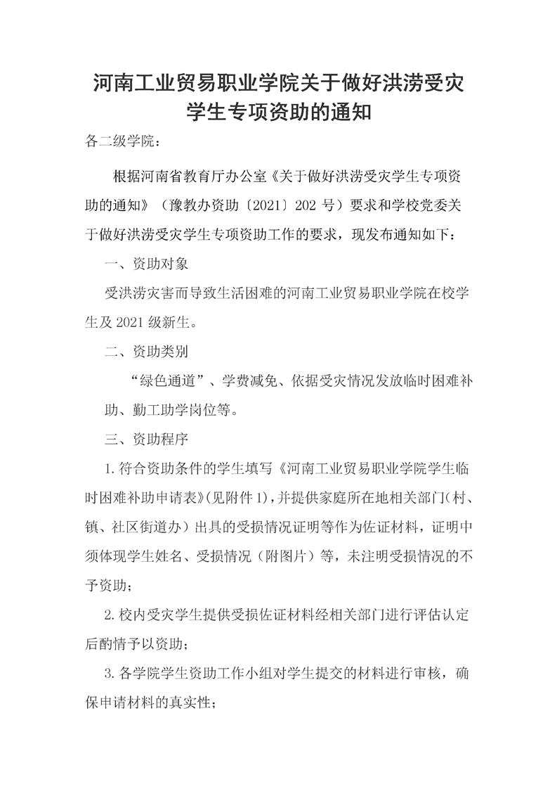 河南工业贸易职业学院关于做好洪涝受灾学生专项资助的通知