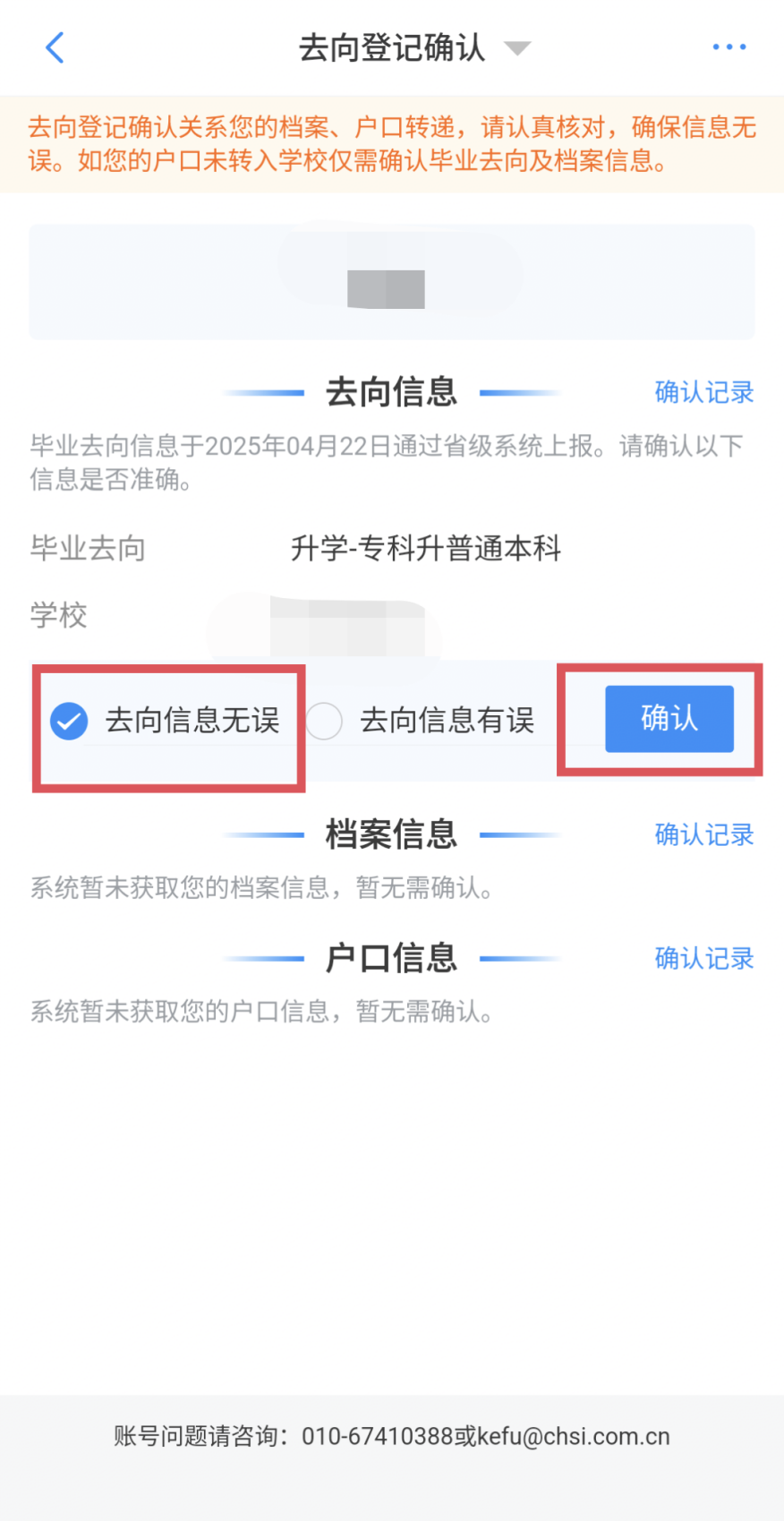 一般每周五学校统一进行信息更新,下周一后即可再次进行无误确认。