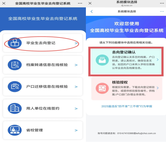 3. 登录全国登记系统后,选择【去向登记确认】。