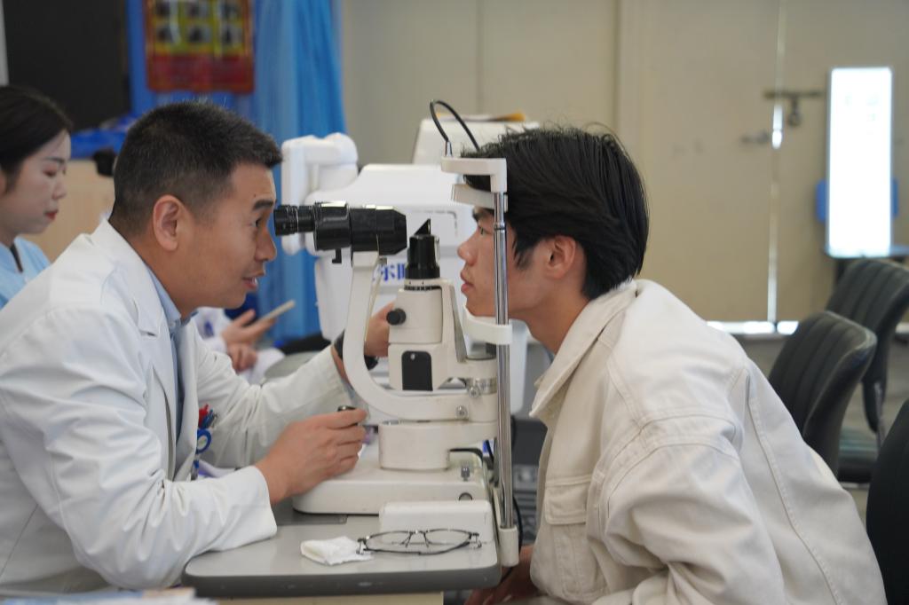 游昌涛以《爱眼护眼、守卫光明眼健康公益行》为题做了专题讲座。他结合临床经验,从眼球结构、常见眼病、近视防控等方面展开讲解,重点分析了大学生群体高发的屈光不正、干眼症等问题。针对“关灯玩手机”“长期戴美瞳”等不良习惯,游昌涛现场演示“眨眼操”“3个20法则”等实用护眼技巧。
