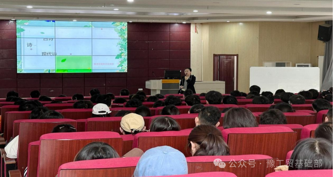 为进一步深化教育教学改革,探索课程思政与专业教育的深度融合,我校教务处于4月15日在教学楼3201教室举行教师示范课观摩活动。本次课程以“格律诗里的文化自信”为主题,由基础理论教学部副主任李婕老师主讲,吸引了全校师生的广泛关注。