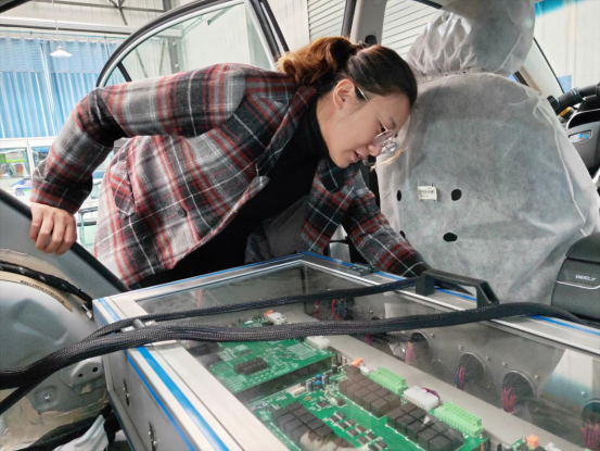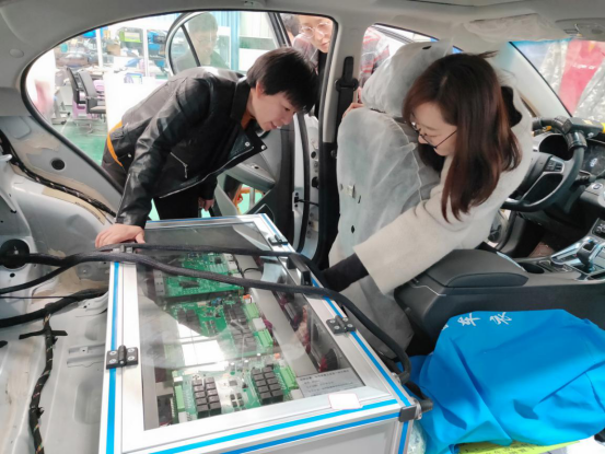 罗志华老师和左冬晓老师认真查看汽车线路。