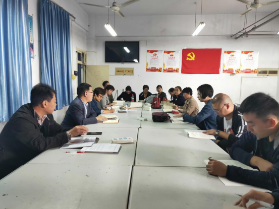 2019年10月22日,机电工程系全体党员老师在实训楼A409教师召开党员学习大会,会上全体老师共同学习了习近平关于“不忘初心、牢记使命”论述摘编。