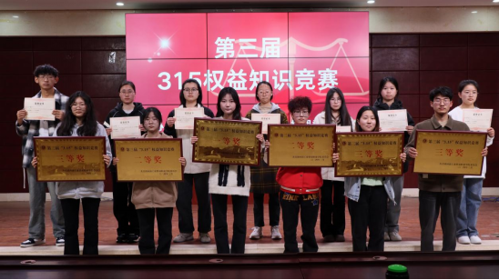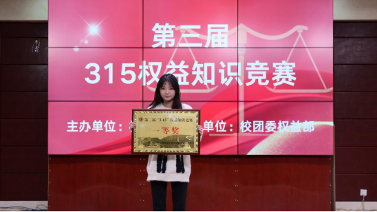 为增强广大学生的维权意识,提高大学生消费维权能力,营造浓厚的维权知识学习氛围,2024年3月14日,学校团委权益部举行了“第三届3.15消费者权益知识竞赛”。经过紧张激烈的角逐,机电工程学院23级机电102班王瑶瑶同学荣获了一等奖的优异成绩。