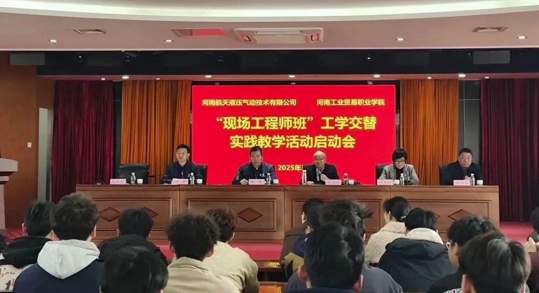 3月10日,由河南工业贸易职业学院与河南航天液压气动技术有限公司联合举办的“现场工程师班”工学交替实践教学活动启动会暨现场工程师实践基地揭牌仪式在河南航天液压气动技术有限公司隆重举行。学校党委书记李国锋、副校长周艳丽,河南航天液压气动技术有限公司党委书记李涛、副总经理付静出席本次活动。仪式由河南航天液压气动技术有限公司人事党建部部长毛利亚主持。