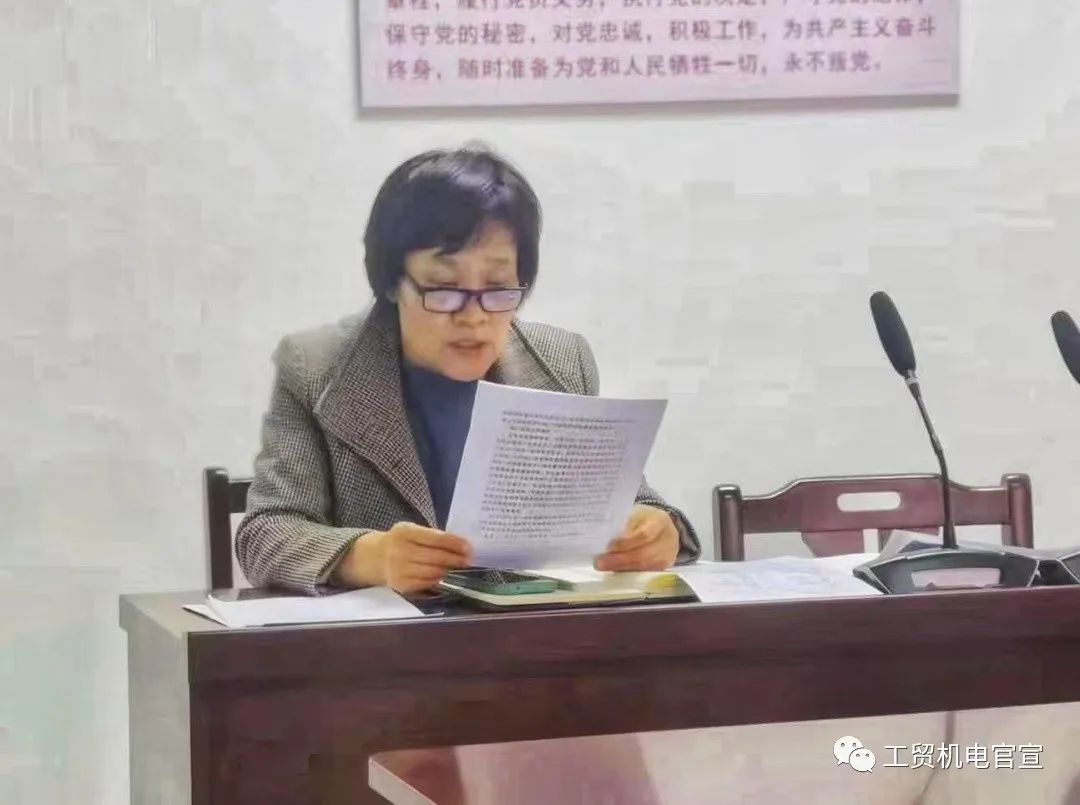 首先,机电工程学院院长周艳丽同志宣读巩固深化不忘初心、牢记使命教育成果—主题教育整改落实“回头看”实施方案,并对全体党员做辅导报告,周院长强调,作为中国共产党,不仅要做到全身心投入到主题教育学习中,还要深入思考,做到学有所得并能学以致用,要做到“听党话,跟党走”,要以此次“回头看”为契机,进一步总结经验教训,把主题教育期间的好做法、好经验转变成管理制度,提升工作成效,同时要进一步检视自身工作,坚决站在维护学校和师生根本利益的基础上毫不松懈的持续抓好整改落实,完善制度机制,提升整改整治成效。