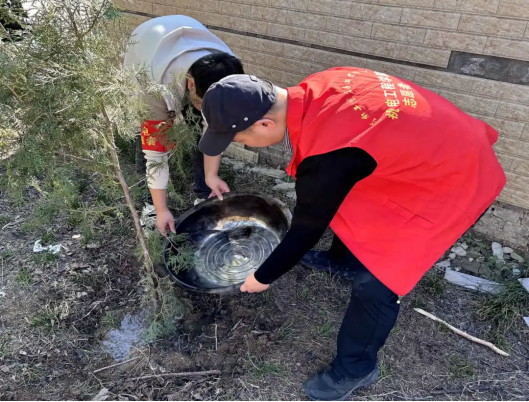 植树现场,志愿者们三五人一组,分工协作。有人挥锹铲土,有人扶苗填坑,有人提桶浇水,现场一片热火朝天,每一个环节都一丝不苟。大家干劲十足,配合默契,现场呈现出一派繁忙有序的劳动景象。经过1个多小时的辛勤劳动,一棵棵新栽的树苗迎风挺立,为初春的大地增添了勃勃生机。