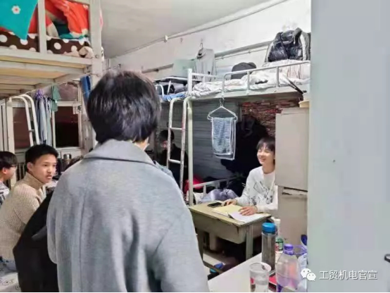 在21级新生宿舍检查中,每进一个宿舍,周艳丽院长和卢振江书记都会亲自慰问新同学,与学生们进行热心交流,询问入校后是否能够适应新的大学生活,有困难和问题都要及时与学院进行反馈,真正做到关心关爱每一位学生,让学生感受到机电大家庭的温暖。