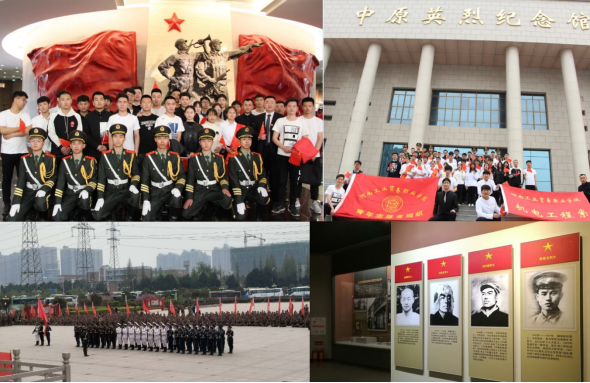在中原英烈纪念馆,师生一行参观了工人运动的开展与大革命浪潮纪念厅、星火燎原土地革命战争厅、抗日战争厅、解放战争厅,聆听讲解,驻足凝望,虔心体味,一段段可歌可泣的英勇事迹,感人肺腑,令人肃然起敬。师生们还在纪念馆广场上共同观摩了由团郑州市委、郑州市教育局和郑州市国防科技学校联合举行的国防军事汇演活动。