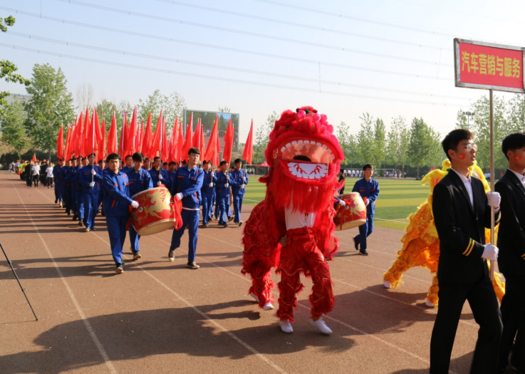 看:他们精神焕发,斗志昂扬,他们体型健硕、铮铮荣光。四只雄狮分列两侧,带领着队伍阔步向前:机电一体化方队身着整洁的工装,锣鼓喧天、红旗招展,彰显着年轻一代的工匠精神;数控机器人方阵带着新鲜出炉的3D打印成品,手持智能机器人造型展现工贸制造的气象;汽车专业方队厚植“绿色、协调、可持续”新能源理念紧紧贴合社会需求,不断积累培育汽车行业生力军
