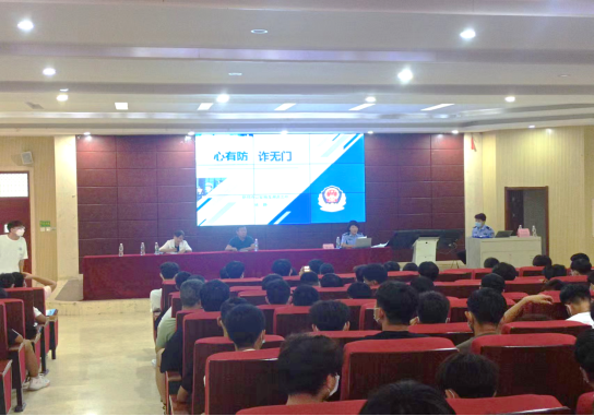 为了提高机电工程学院2022级新生安全防范意识,增强同学们自我信息和财产安全保护能力,杜绝校园诈骗情况的发生,2022年9月19日下午在三号教学楼3301和3401教室开展了“心有防,诈无门”主题活动,详细的向师生们讲解了新型电信网络诈骗的形势、种类和危害,教育引导师生提高识骗、防骗能力,共同筑牢反诈防护墙。