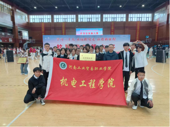 河南工业贸易职业学院校团委举办了校园团体操大赛,机电学院学子用一场精彩纷呈、活力四射的团体操表演,展示出我院青年特有的朝气和活力。