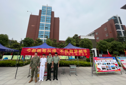 为激发广大学子的参军热情,弘扬爱国主义精神,增强青年学生的国防意识,5月19日至21日机电工程学院在学校红旗广场举行了以“今朝携笔从戎,不负有梦韶华”为主题的征兵宣传活动,活动采用现场解答和主题班会相结合的形式进行!