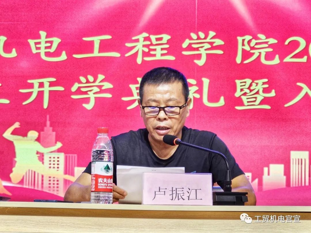 最后,机电工程学院党总支书记卢振江总结发言,面对台下无数张青春的面孔,卢书记向新生表达美好祝愿:“希望同学们生逢盛世当不负盛世,生逢其时当奋斗其时,勇立潮头,勇挑重任,做新时代的弄潮儿。不要辜负人生的大好时光,努力去拼!在努力拼搏中收获友谊,收获知识,挖掘自己的潜能,书写属于自己的精彩人生!”
