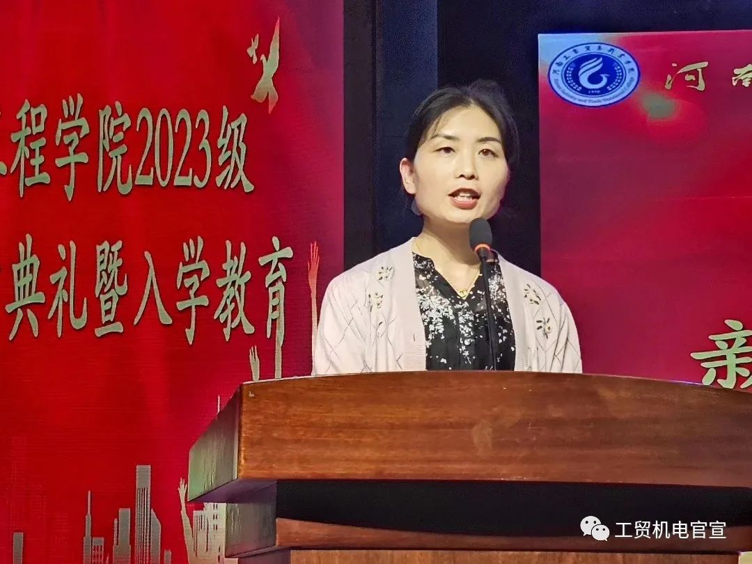 在这个金色满园、景色如画的季节,机电工程学院迎来了青春洋溢、朝气蓬勃的1200余名新同学,他们的融入使学院这个大家庭更加波澜壮阔、更加生机盎然。9月13日下午,机电工程学院隆重召开2023级新生开学典礼暨入学教育。机电工程学院党总支书记卢振江、院长周艳丽、总支副书记郑丽敏、副院长侯远韶、机电工程教研室主任党霞、智能制造教研室主任李倩及23级新生辅导员、教师代表和全体2023级新生参加开学典礼。典礼由副院长冯春丽主持。