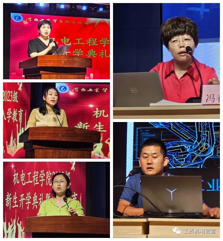 接下来,机电工程教研室主任党霞老师、机电一体化技术专业负责人马鑫、工业互联网应用专业负责人阮莹老师、智能制造教研室主任李倩老师、工业机器人技术专业负责人侯远韶老师分别向新生介绍了专业发展历程、师资力量、培养目标、就业前景等情况,并勉励全体新生脚踏实地、善于探索、勇于实践,从专业学习中练就真才实学,努力成长为适应新时代要求的高素质创新型人才。