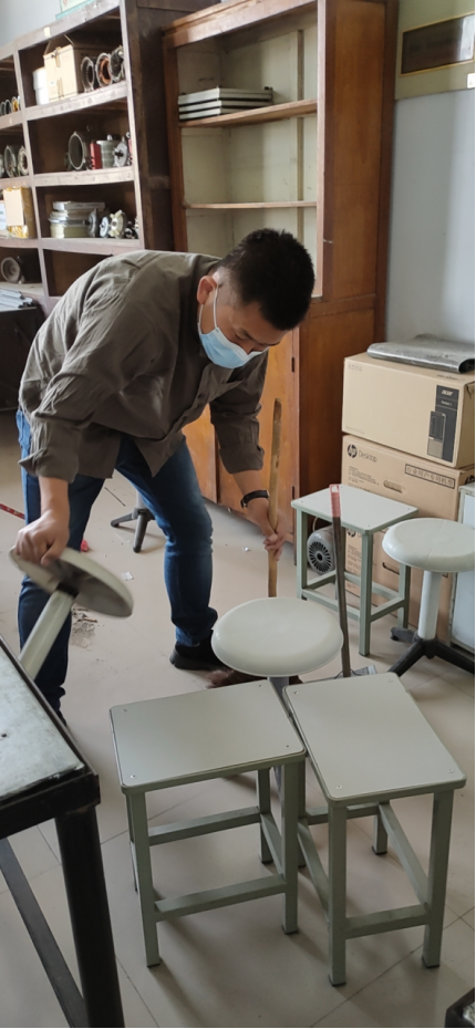 实验室和实习工厂已经停课将近半年,很多设备都已经被厚厚的灰尘覆盖,实习工厂的地面上更是由于杨絮柳絮和树叶的堆积,已经宛如深山老林一般!
