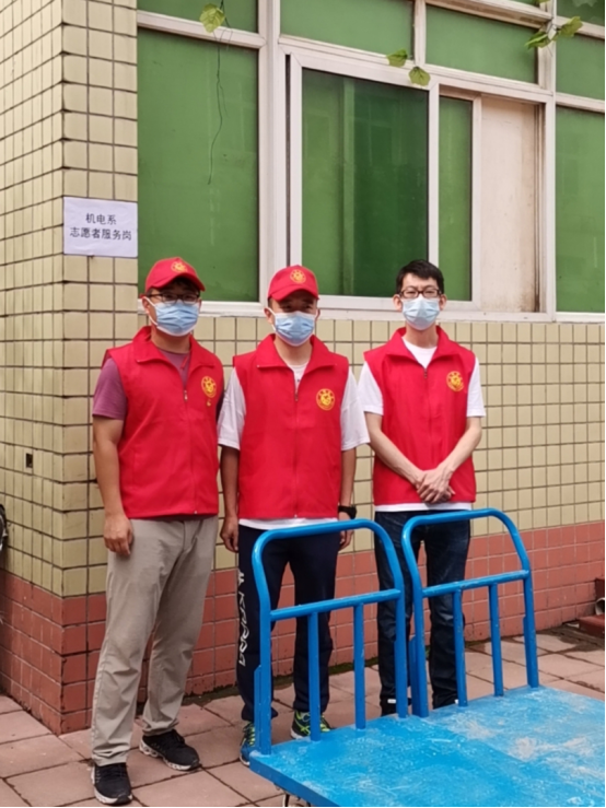 2020年是特殊的一年,学生们都在家线上学习,终于等来了返校,可是来去匆匆,收拾好的行李也不像以往一样,可以直接在宿舍打包邮寄。眼见拿着大包行李离校的同学们,冒着骄阳,汗如雨下,机电工程系志愿者们,自愿组成了帮帮团,帮助同学们运送行李。