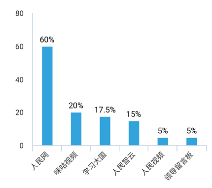 从统计数据看,有60%的老师选择使用人民网观看,有20%的老师选择用咪咕视频观看,选择其他平台的较少。