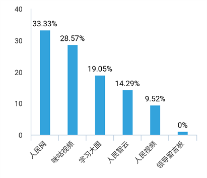 有33.33%的学生选择用人民网观看,有28.57%的学生选择用咪咕视频观看,有19.05%的学生选择用学习大国观看。