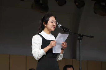 在军训动员大会中程欢珂老师带领他们一起宣誓:刻苦训练、严守纪律、听从指挥、服从命令、磨练意志、不怕困难、尊敬老师、尊重教官,争做军训标兵,为班级增光,为学校添彩!