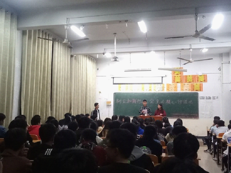 党的十八大提出要倡导富强、民主、文明、和谐,倡导自由、平等、公正、法治,倡导爱国、敬业、诚信、友善,积极培育和践行社会主义核心价值观。机电工程系于2018年10月31号下午在一号教学楼开展以“树立和践行社会主义核心价值观”为主题的团学活动。